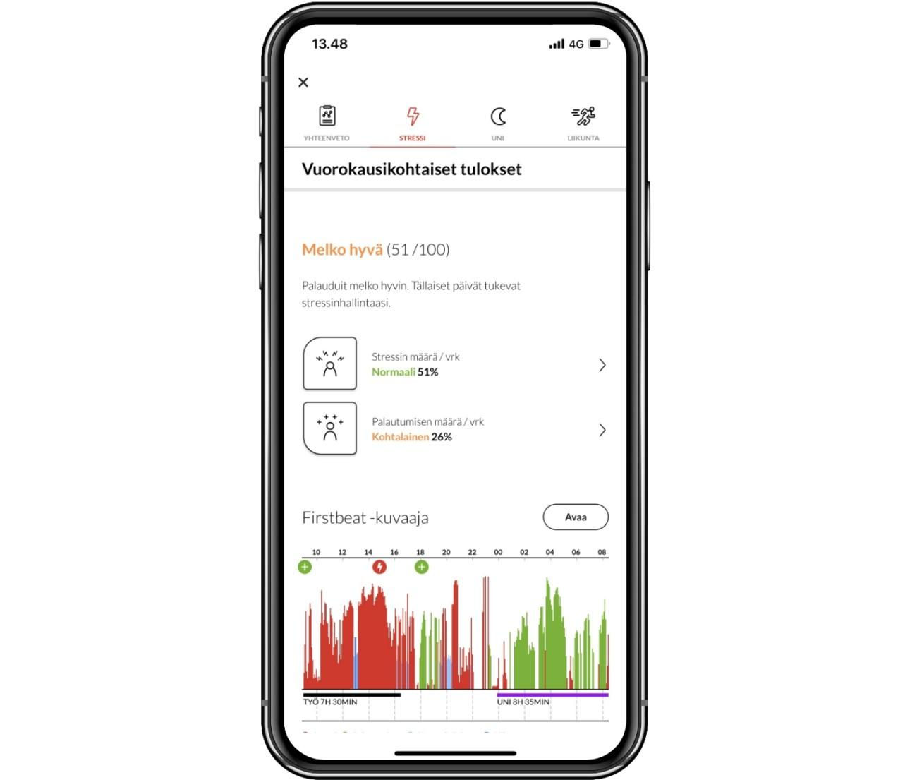 Firstbeat Life on henkilökohtainen terveys- ja hyvinvointipalvelu, joka avaa erittäin tarkasti omaa stressin, palautumisen, unen ja liikunnan tilannettasi. Palvelu auttaa ymmärtämään, miten parhaiten edistät kehon ja mielen hyvinvointia juuri sinulle sopivalla tavalla sekä löydät tasapainon kuormituksen ja levon välillä.